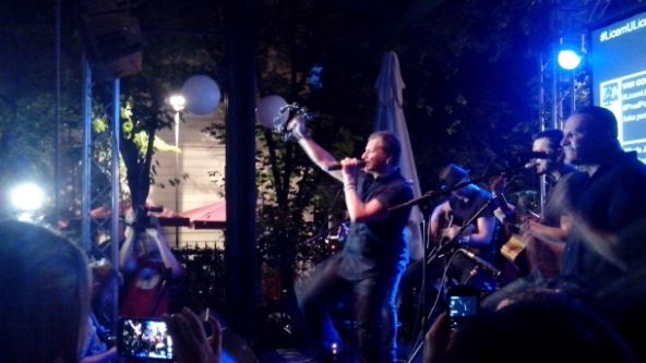 U prijatnoj atmosferi bašte Kluba književnika, bend je izveo nekoliko pesama sa novog albuma "Neumeren u svemu", u specijalnoj, "unplugged" verziji kakvu smo mogli da čujemo i pre dve večeri, na koncertu Noć za pomoć.