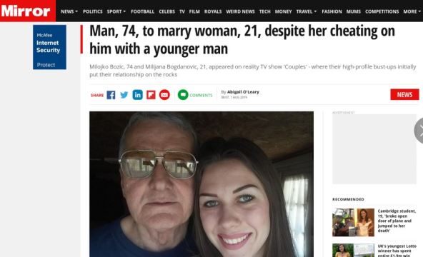 Sada, i ostatak sveta može da se zabavi ili šokira ovom pričom, s obzirom na to da je britanski "Mirror" objavio podugačak članak o "srpskom paru" koji će se "venčati uprkos preljubi".