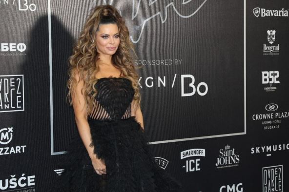 Kao i uvek, Nikolina je izgledala spektakularno - u dugoj, crnoj haljini, otvorenih leđa i dugom, kovrdžavom kosom.