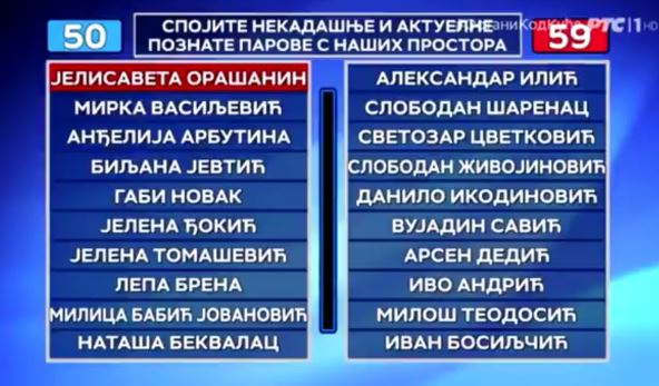 Igra Spojnice i zadatak da se spoje javne ličnosti koje su bile ili su trenutno u vezi ili braku.
