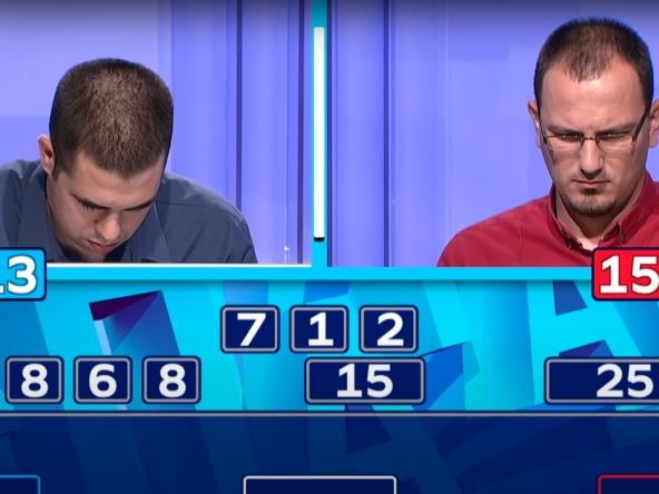 Uz pomoć brojeva devet, osam, šest, osam, 15 i 25, trebalo je da dobiju broj 712. Nijedan nije uspeo, pa su voditeljki prijavili brojeve koje bi dobili veoma prostim sabiranjem - 40 (15+25) i 48 (15+25+8).