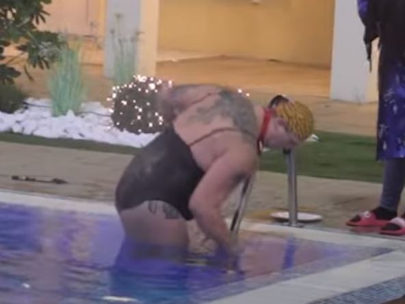 Ovaj put u pitanju je jednodelni kupaći kostim, u kom je Golubović uskočio u bazen.