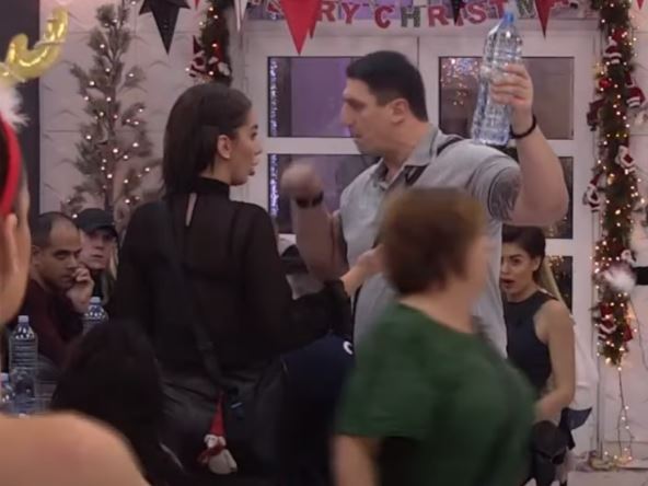 Aleksandra ga je izazvala da, ako sme da je polije vodom, on je zgrabio flašu sa stola, prišao joj i uneo joj se u facu, ali je ipak odustao.