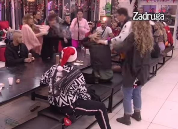 Momci su se gađali flašama i vodom, nakon čega su zadrugari na sve načine pokušavali da ih razdvoje i spreče dalji sukob.