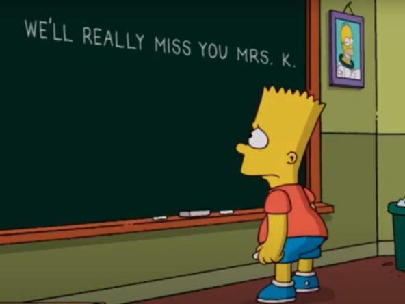Tako je Bartova učiteljica, gospođa Edna Krabapel, "nestala" iz serije ali je izvršni producent Al Džin rekao da ga je uvek mučilo što se ekipa serije i gledaoci nisu od nje oprostili na pravi način. Sve do sada, zato je to urađeno osam godina kasnije!