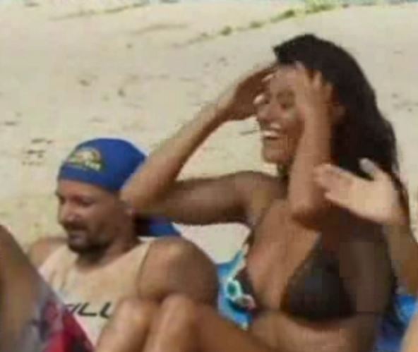 U takmičarskoj igri u vodi je uspeo da joj slučajno svuče donji deo kupaćeg, a potom je sama "sevnula" kada joj se otkopčao gornji deo.