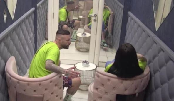 Nakon što je u Zadruzi izbila burna rasprava oko zajedničkog klipa Tare i Ša, usled koje je Simova pljunula Miljanu Kulić, par je svoju svađu nastavio nasamo u pušionici.