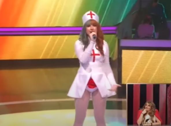 Ona je na binu izašla u seksi kostimu medicinske sestre, ispod kojeg su se videle bele gaćice, na koje je bila prikačena crvena ruža. Sada je otkrila i da joj je mentor Đorđe David rekao da tako obučena izađe na binu.