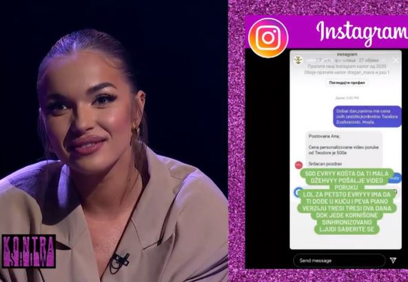 Pevačica Teodora Džehverović u novoj emisiji "Kontra šou" koja se emituje na Kurir televiziji odgovorila je na prozivke koje je dobijala kada se saznalo da za rođendanske čestitke naplaćuje 500 evra.