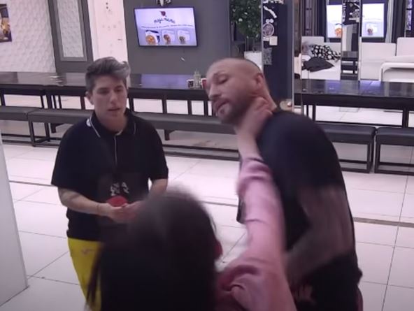 Reper ju je prvo grlio i ljubio, a zatim ju je isprovocirao, pa je između njih došlo do manjeg sukoba.