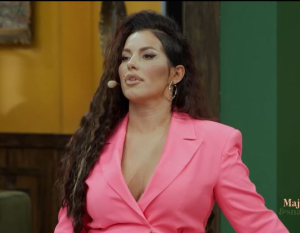 Voditeljka emisije zablistala je u roze kompletu ispod koje nije nosila brushalter, a posebna frizura istakla je i njeno negovano lice.
