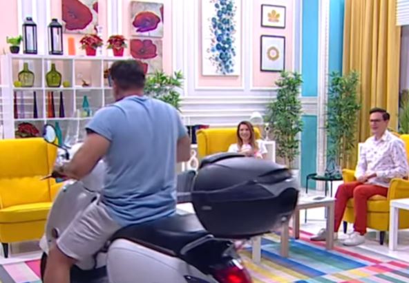 Sani je provozao motor usred emisije, dok su ga Natalija i voditelj šokirano posmatrali. Potom ga je parkirao u uglu i pozdravio se sa svima.