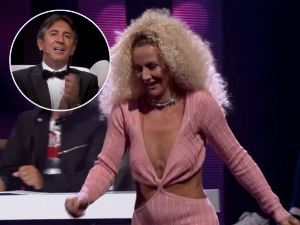 U jednom momentu je poželela da poljubi takmičara, pa je morala da ustane da bi došla do scene, a to je bio pravi raj za muške oči.