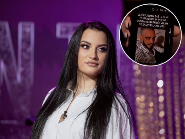 "Ološu jedan, zašto si mi to uradio?! Ja preko ovoga neću preći!!! Volim te zauvek, laku noć", izdiktirala je voditeljka, a Barbara je napisala, podelila stori i pokazala telefon.