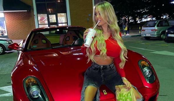 Starleta se na Instagramu pohvalila da je dobila skupocena kola marke BMW, ukrašena velikom mašnom i balonima, a ni njen pas nije smeo da bude izostavljen te je on dobio identičan minijaturni automobil na čijim tablicama piše "Stiker".