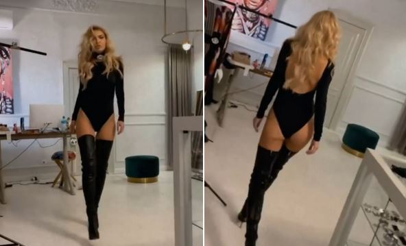 Snežana nije pokazala samo duge noge, već i zadnjicu u tangama, kada je okrenula leđa u crnom bodiju koji ništa nije ostavio mašti.