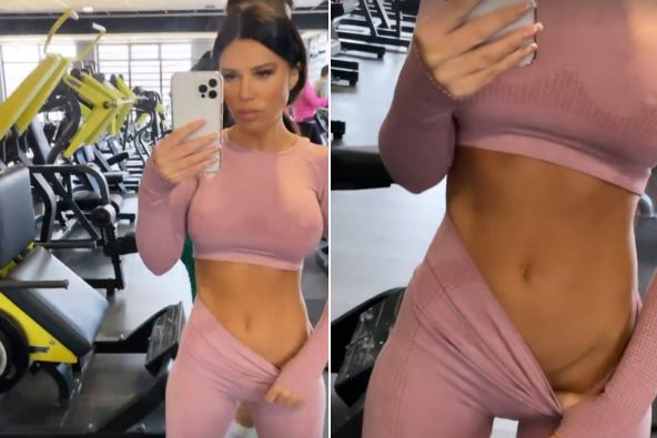Stala je ispred ogledala i svukla helanke toliko da je zamalo "sve" ispalo i tom prilikom pokazala da ispod nije nosila gaćice.