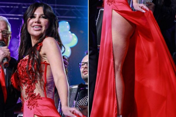 Ona je ponela crvenu haljinu, koja je više otkrivala nego što je sakrivala – silikoni su bili u prvom planu, a kada se okrenula i tanga gaćice, ali i malo celulita.