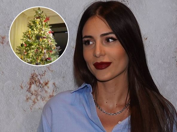 Raskošno okićena jelka sa milion lampica je visine sve do plafona i stoji u uglu sobe kraj prozora, a ukrašena je neobičnim detaljima kojima je oduševljena i mlada pevačica.
