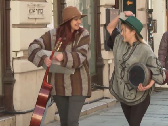 Njih dve su svirale, pevale, zabavljale građane koji su im oduševljeno prilazili, ali i zaradile novac.