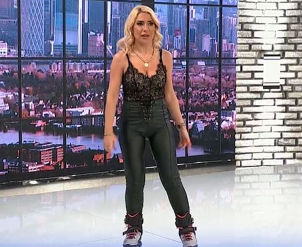 Sela je na pločice i izula se usred studija dok su kamere sve snimale, a osim cipela je skinula i jaknu, pa je ostala u majici koja je isticala njen dekolte i u uskim kožnim pantalonoma.