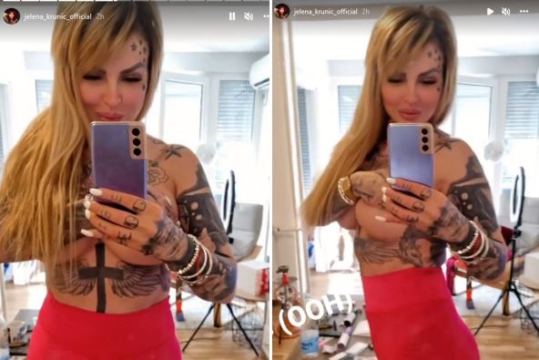 Jelena je ispozirala u helankama, dok je preko golih grudi stavila ruku.