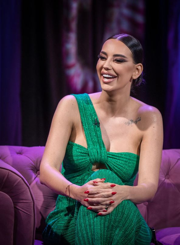 Vitku figuru je pokazala na medenom mesecu sa fudbalerom, a sada i u emisiji na Kurir televiziji i to obučena u zelenu, pripijenu haljinu koja je otkrila "struk i kuk", ali i silikonske grudi.