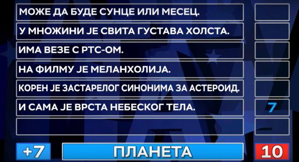 Ređali su se sledeći koraci "U množini je svita Gustava Holsta", "Ima veze s RTS-om"... da bi konačno rešenje glasilo "planeta".