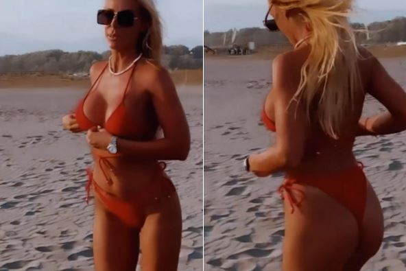 Bojana je objavila snimak tokom šetnje po plaži obučena u crveni bikini, a u jednom trenutku je morala i da ga "namešta".