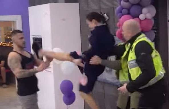 Sanju su momci iz obezbeđenja kasnije držali dalje od Marka, ali se ona otimala i dizala noge kako bi nastavila da ga bije. Pogledajte: