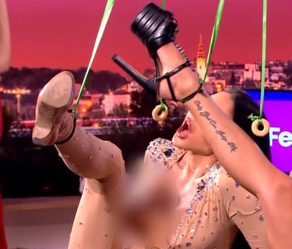 Maja je, obučena u kostim s dubokim dekolteom, za nogu imala zavezan kanap na kojem visi keks. Zadatak je bio da digne nogu kako bi mogla da zagrize keks, ali je tom prilikom kostim rešio da se otvori. Prvo se videla samo jedna dojka, a na povike voditelja da obrati pažnju, starleta nije reagovala.