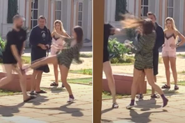 U jednom momentu je nekoliko puta šutnula Zvezdana u polni organ tako da se savio od bolova, a zatim ju je ošamario, ali ni to je nije zaustavilo. Obezbeđenje je sve vreme bilo uz njih, a Slavnić je nekoliko trenutaka kasnije poleteo na Anđelu dok mu je svašta izgovarala.