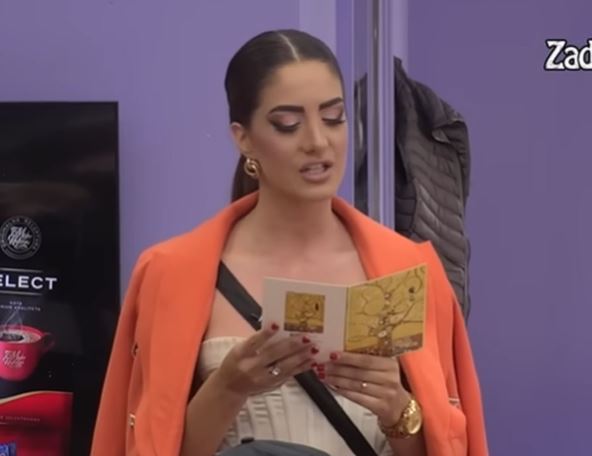 "Nisam ni sumnjala, ali bilo mi je malo teško kada nisam dobila ništa za Uskrs", počela je Anđela, pa pročitala čestitku: " Anđela, ti dobro znaš kakva smo mi familija, da mi ne ostavljamo jedni druge. Sve posmatramo i uvek stojimo iza tebe. Šaljemo ti poklone i želimo ti srećnu slavu. Proslavi je sa zadrugarima. Tvoji, koji te najviše vole, tata, mama, sestra i brat. Tvoja porodica te voli".
