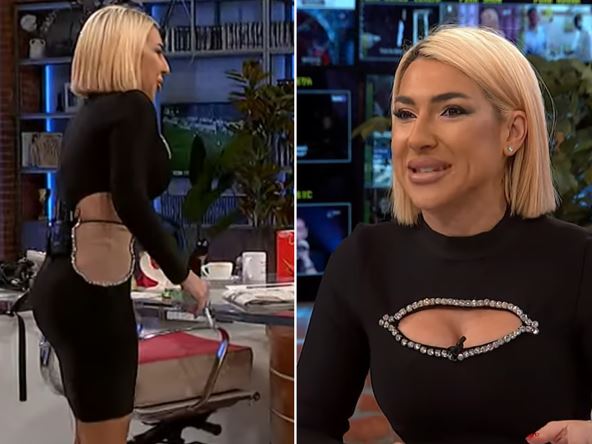 Rupe na voditeljkinim bokovima pokrenule su lavinu komentara, dok su se mnogi pitali da li uopšte nosi veš. Ipak, jasno je da je reč o mrežici u boji kože koja dovoljno pokriva tako da Jovana može bez problema voditi program. Pogledajte je: