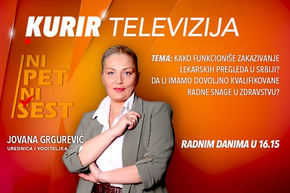 Autorka i voditeljka Jovana Grgurević, u današnjoj emisiji “NI 5 NI 6” na Kurir televiziji, baviće se temom stanja u zdravstvu. Kroz razgovor sa svojim gostima- prof. dr Valentinom Arsić Arsenijević, iz Udruženja građana Lekari i roditelji za nauku i etiku, dr Gradimirom Dragutinovićem, radiologom i prof. dr Miljkom Ristićem, kardiohirurgom, voditeljka Jovana Grgurević pokušaće da otkrije za vas sve u vezi sa stanjem zdravstva u Srbiji. Ko nas leči, da li imamo dovoljno kvalifikovanih zdravstvenih radnika, šta nas čeka prilikom odlaska kod lekara, koje su procedure zakazivanja lekarskih pregleda.