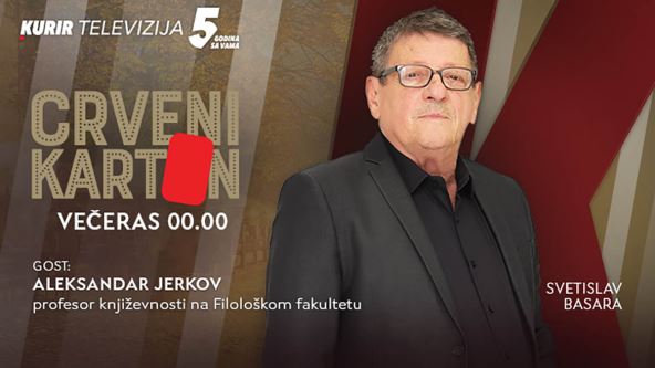 Gost emisije “Crveni karton”, autora i voditelja Svetislava Basare, je Aleksandar Jerkov, profesor književnosti 20. veka i direktor Univerzitetske biblioteke u Beogradu.