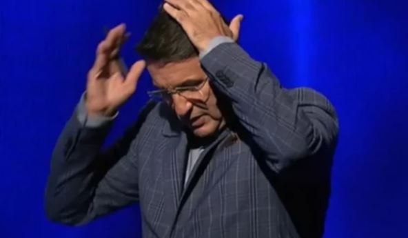 "Čekaj, samo da se oslobodim muve. Vidiš, sletela je. Izlakirali smo (kosu), lak je privlači" - rekao je voditelj pokušavajući da se reši muve, pa nastavio: