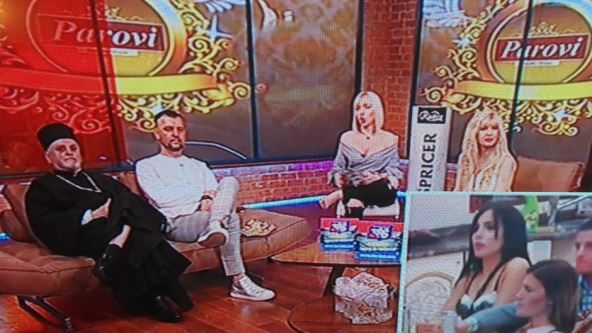 Sveštenik je došao na Happy televiziju kao podrška učesniku Zoranu Manijaku.