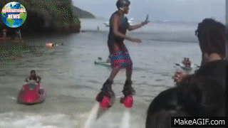Tako je i ovaj momak pokazivao šta sve ume na hidro-džetu, lebdeo je pored kafića sa muzikom i spazio zgodne devojke. Eto prilike da se "nametne" svojim veštinama.