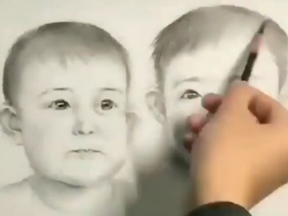 U pitanju snimak na kom vidimo ruku, olovku, jedan papir na kom su nacrtana lica dve bebe, dečaka i devojčice, a zatim posmatramo savršenu ruku umetnika kako iscrtava njihov put od beba do bake i deke.