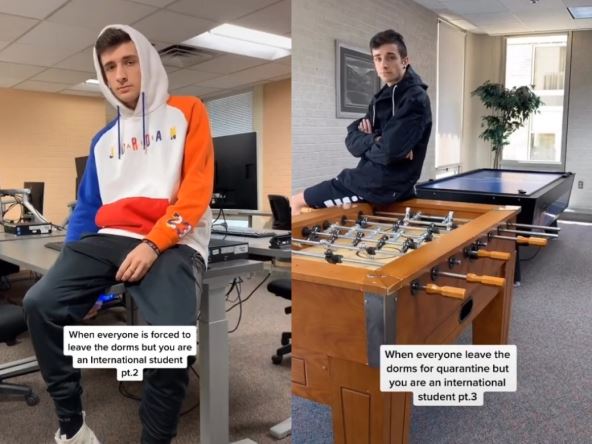 U studentskom domu sam samcit je ostao 19-godišnji Italjan Luka Petrogali, koji je iz Torina, a pošto je i Torino zaključan, jer je u epicentru pandemije u Italiji, povratak kući nije bila opcija. Da bi se nekako zabavio i da ne bi "odlepio", smislio je način kako da bude kreativan.