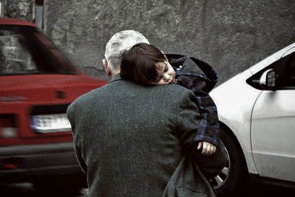 On je seo na stolicu u dvorištu kuće pored prozora, sa knjigom u ruci, dok je njegovu unuku mama držala u rukama s druge strane prozora.