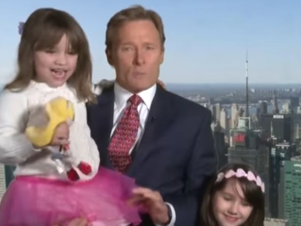 Lonijeva supruga imala je online sastanak, kada je trebalo da on započne uživo uključenje, a njegove dve kćerke, Sevi i Lili, nije imao ko da pričuva, te su odlučile da i one "uskoče" u prognozu.