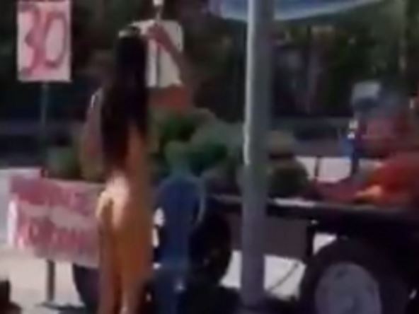 U klipu za nevericu videćete potpuno golu devojku koja bira lubenicu s kamiona.