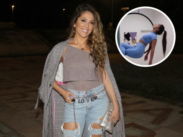Pevačica je objavila nekoliko fotografija na svom Instagramu gde u uskim helankama i topu radi akrobacije oko obruča koji je zakačen za plafon.