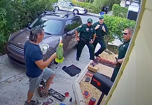 Zbog svoje nepažnje jedan stanovnik Floride otvorio je vrata doma policijskoj patroli zbog prijave komšija. Vlasnik papagaja, Džejson je u svom dvorištu popravljao auto kada ga je prekinula policija, jer se iz njegove kuće čulo glasno zapomaganje: