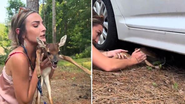 Dve prijateljice pronašle su uplašeno lane ispod kola i odlučile su da ga izvuku, ali i da sve snime. Dok je jedna držala kameru, druga se sagla i pokušala da uhvati uplašenu životinju.