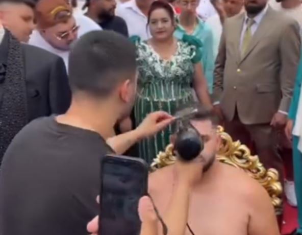 Nije poznato da li je reč o svadbi ili rođendanu, ali se na snimku vidi glavni akter veselja koji je odlučio da se spremi pred svojim gostima. U salu je upao go do pojasa, potom seo na stolicu i šišao se i fenirao dok su ga zvanice snimale.
