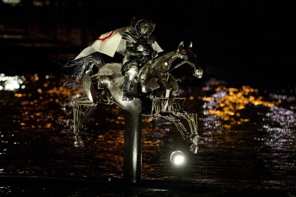 Jahačica koja na metalnom konju "galopira" rekom Senom, jedan je od najspektakularnijih prizora s otvaranja Olimpijskih igara. Zastavu je potom predala na Trokaderu, kao što je tradicija prije nego što se Igre proglase otvorenim.