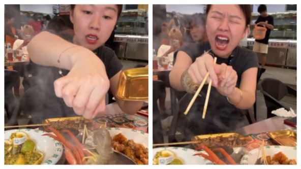 Okružena morskim plodovima, ona je snimala svoje kulinarsko umeće, sve dok se "večera" nije pobunila a žena završila u suzama od bola koji je doživela, jer je jedan račić kome je život i dalje mio ugrizao!